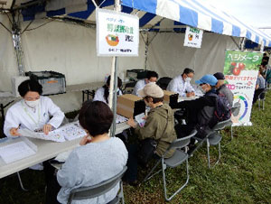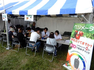 当会ではベジメーターでの野菜摂取量測定とお薬相談を実施しました。多くの方に興味を持っていただき、絶えず参加者の皆さまがいらっしゃいました。400名近い方々が体験され大変ご好評をいただきました。
